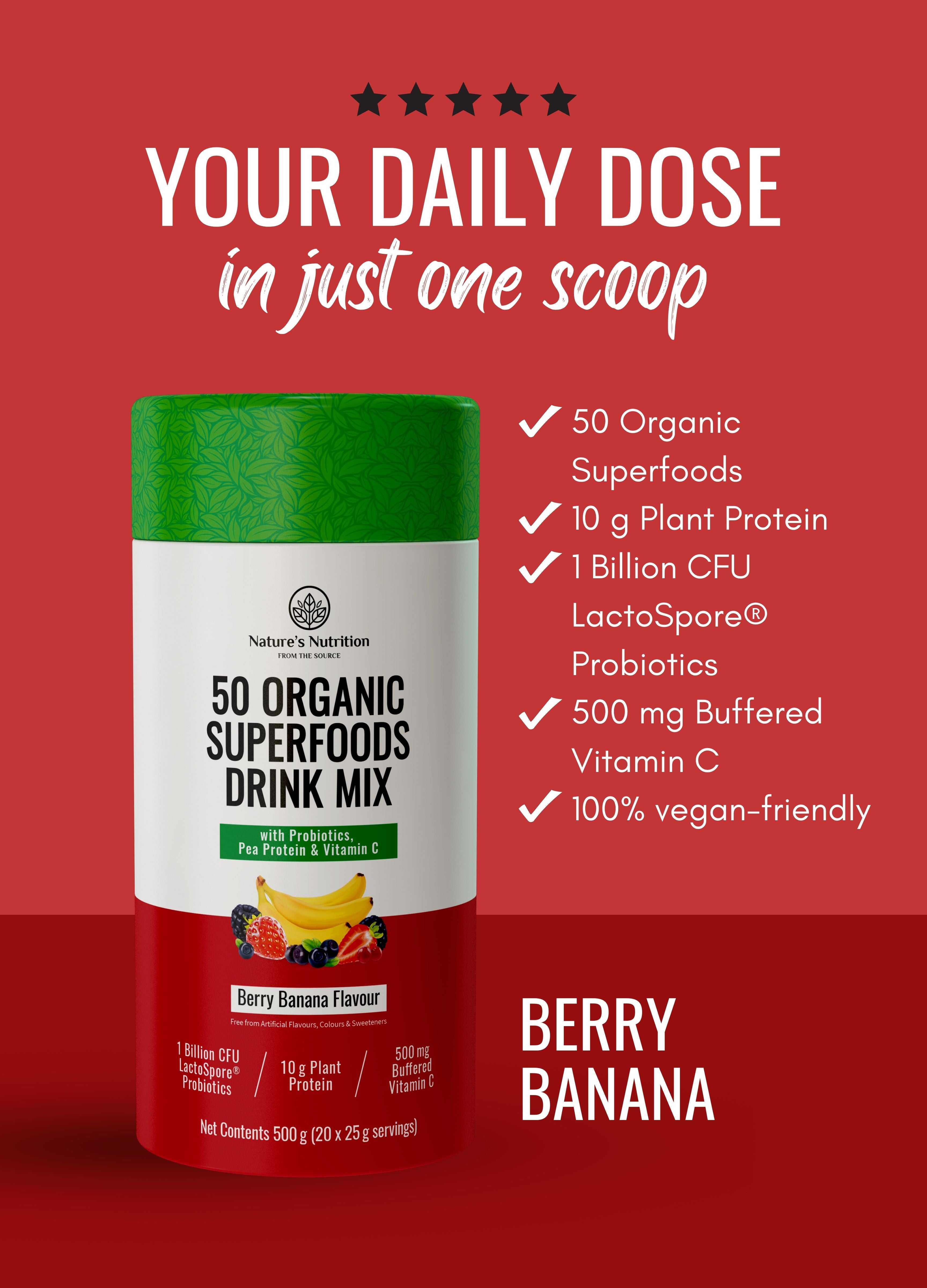 50 Organic Superfoods Drink Mix | Berry Banana