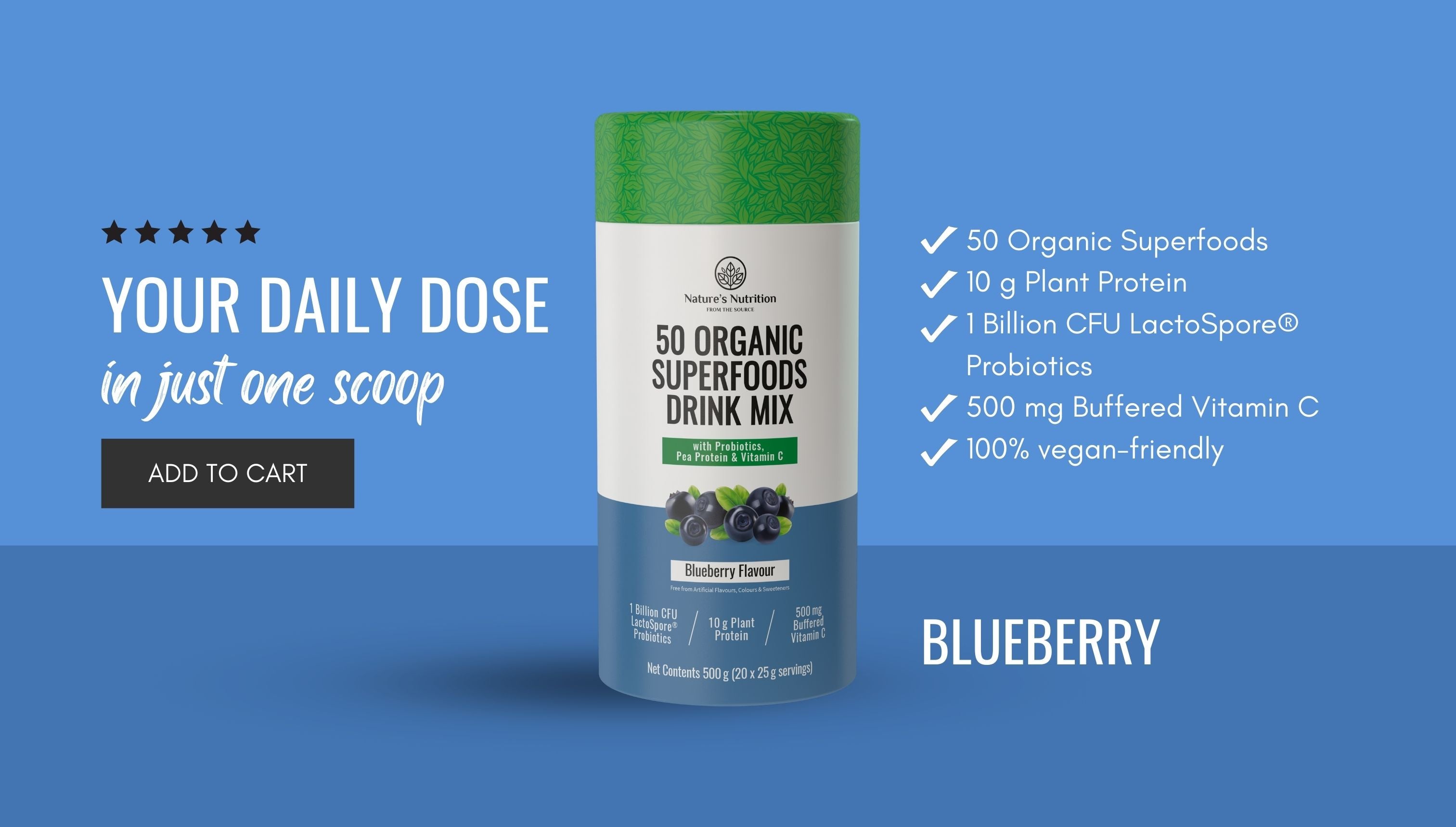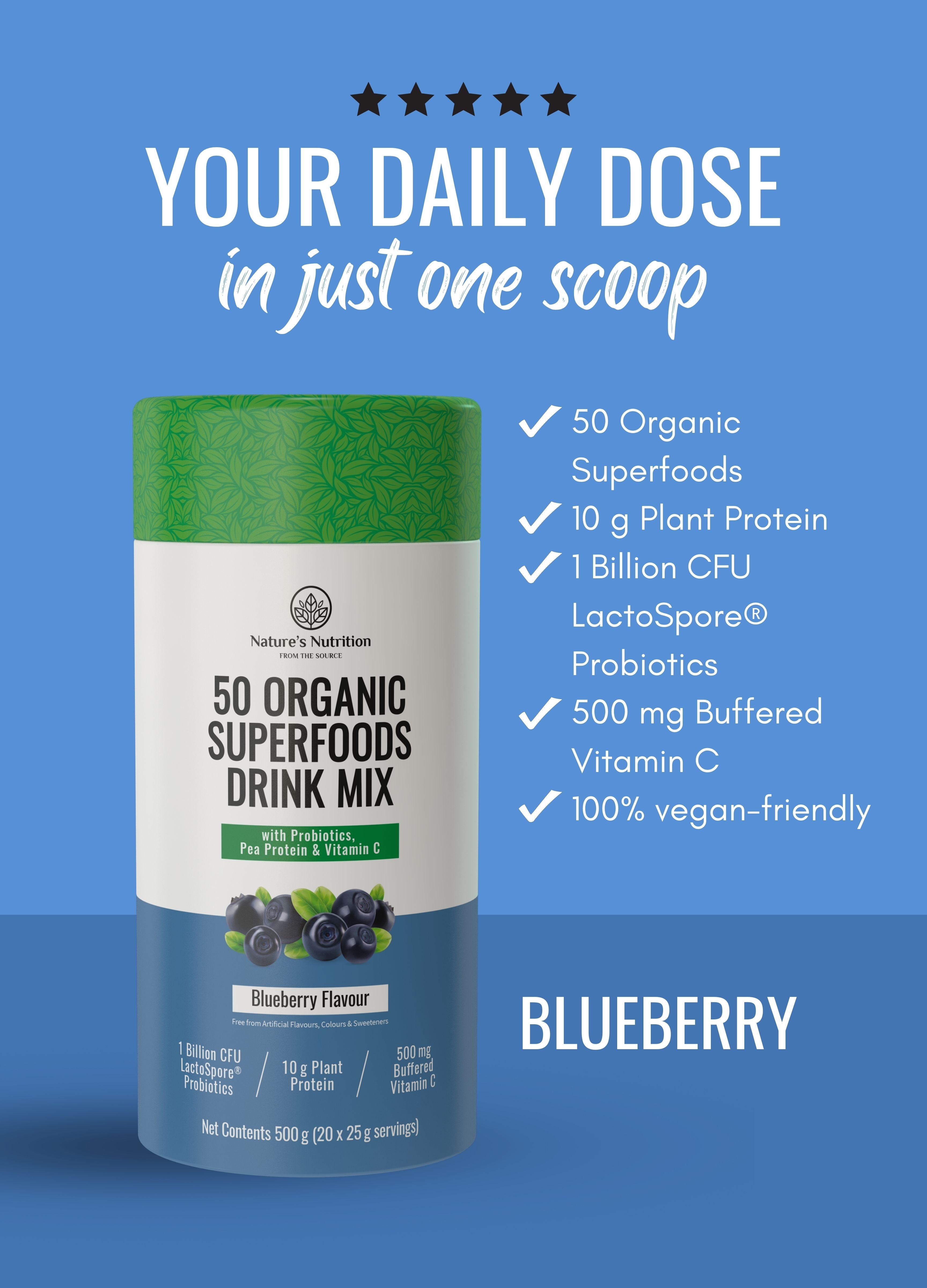 50 Organic Superfoods Drink Mix | Blueberry- Regular price