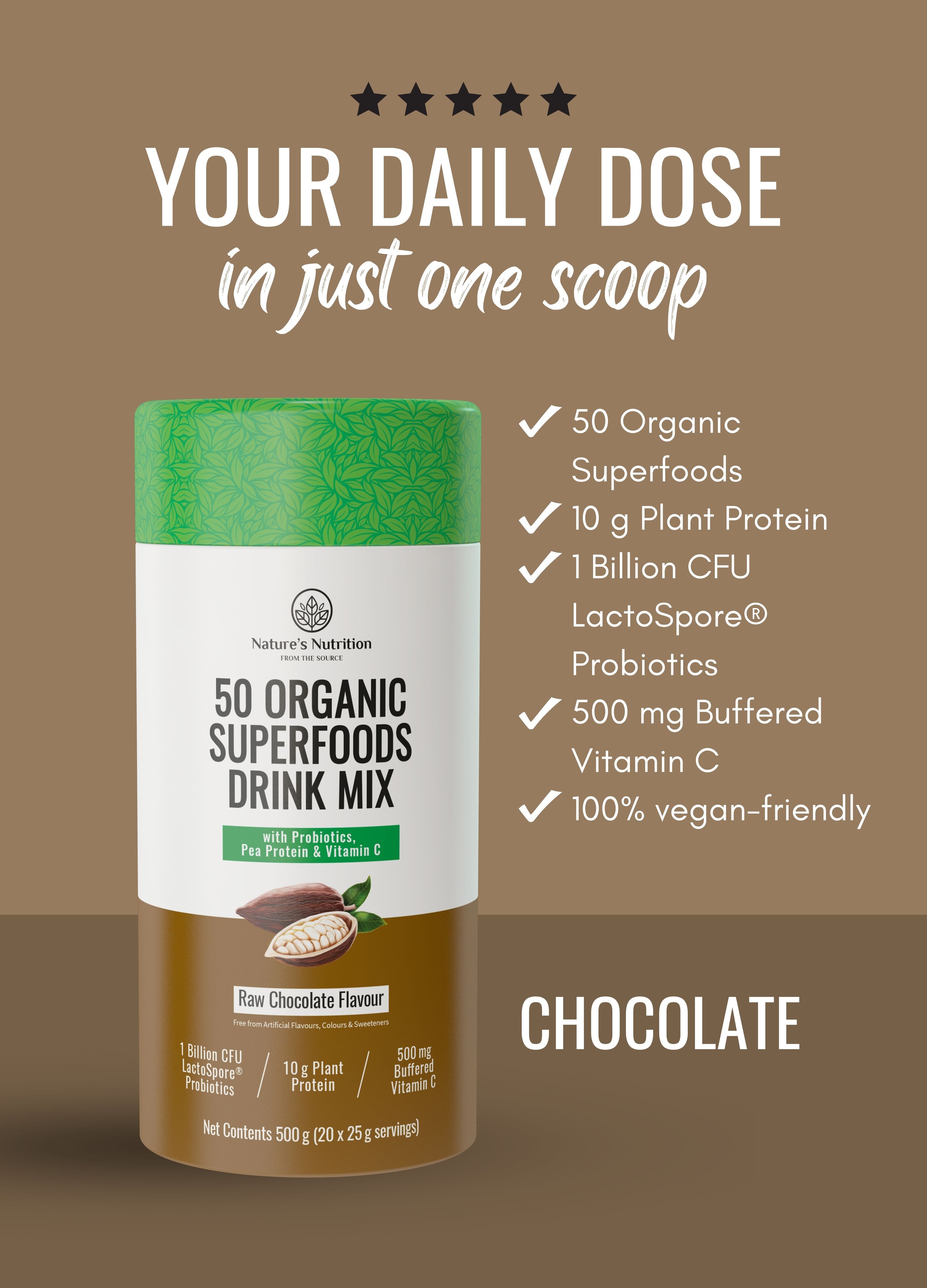 50 Organic Superfoods Drink Mix | Raw Chocolate