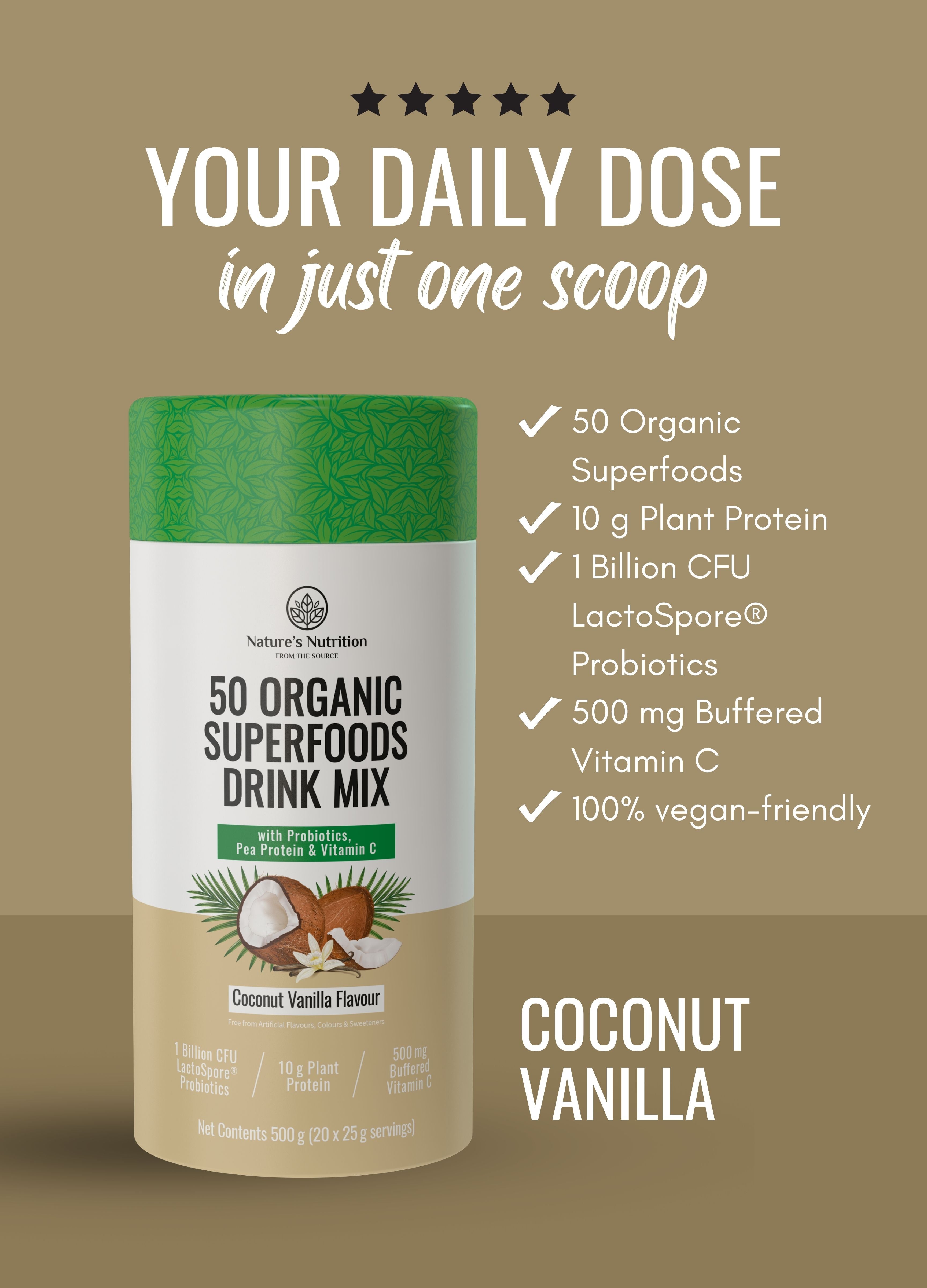 50 Organic Superfoods Drink Mix | Coconut Vanilla