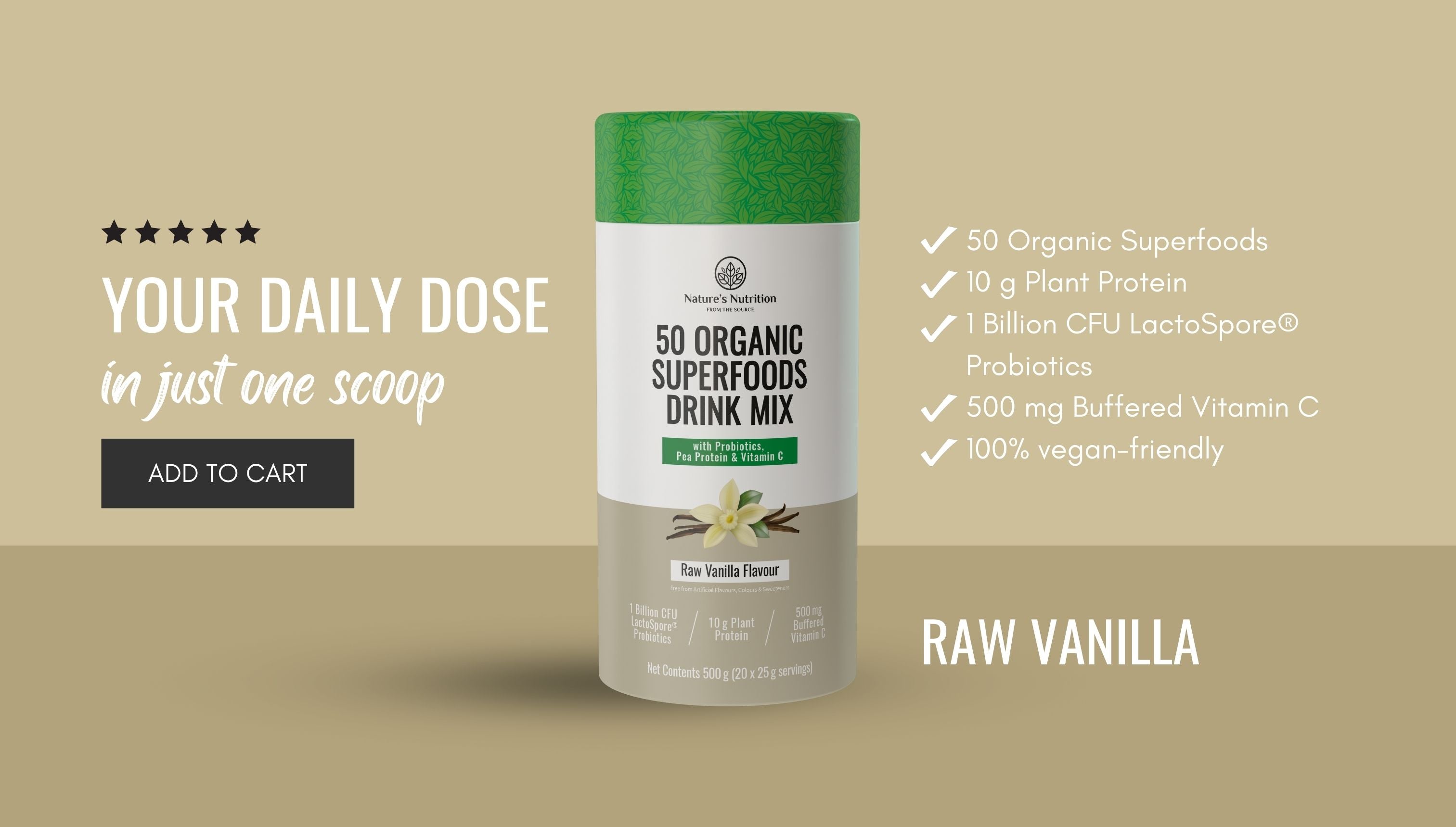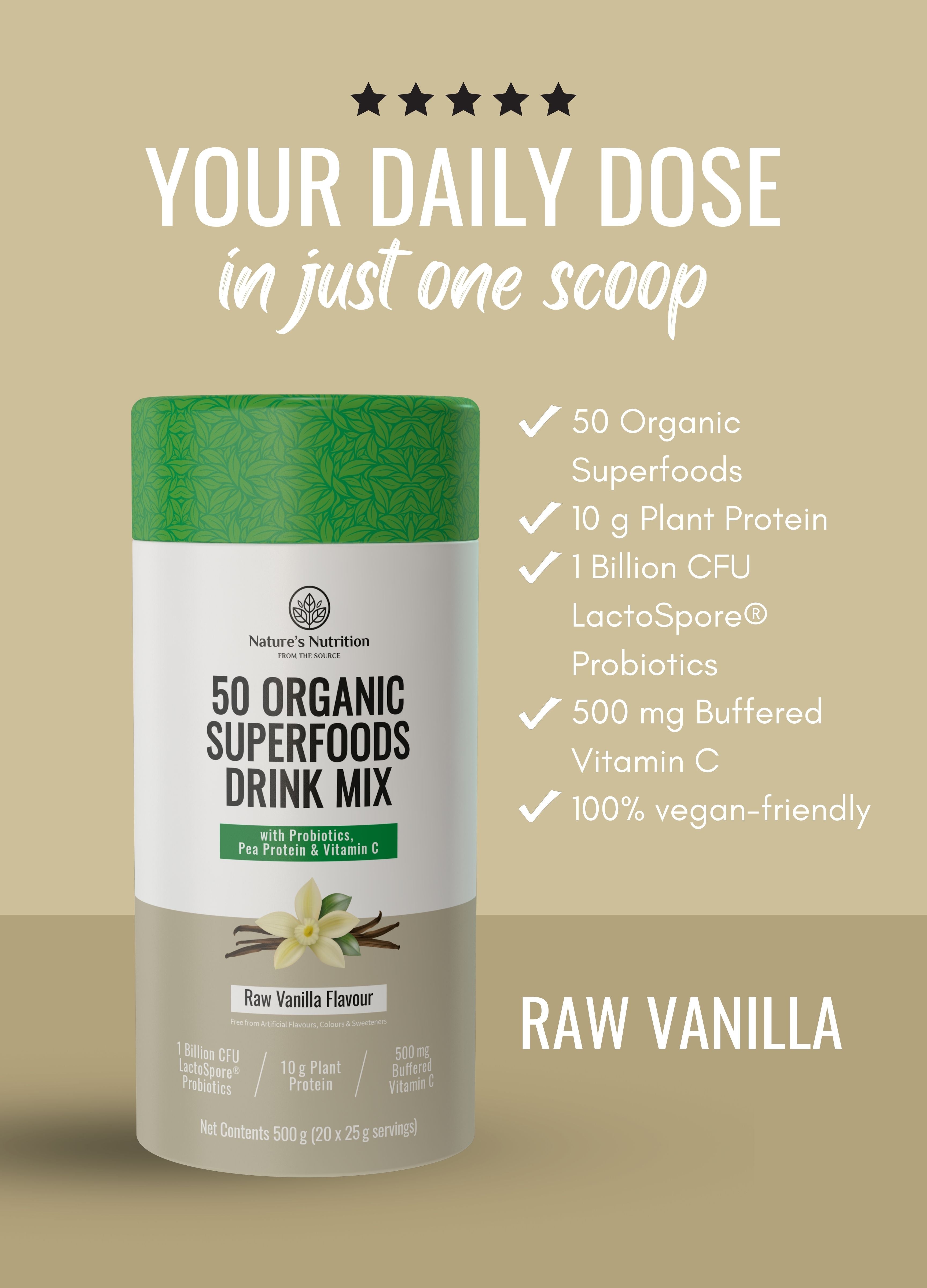 50 Organic Superfoods Drink Mix | Raw Vanilla
