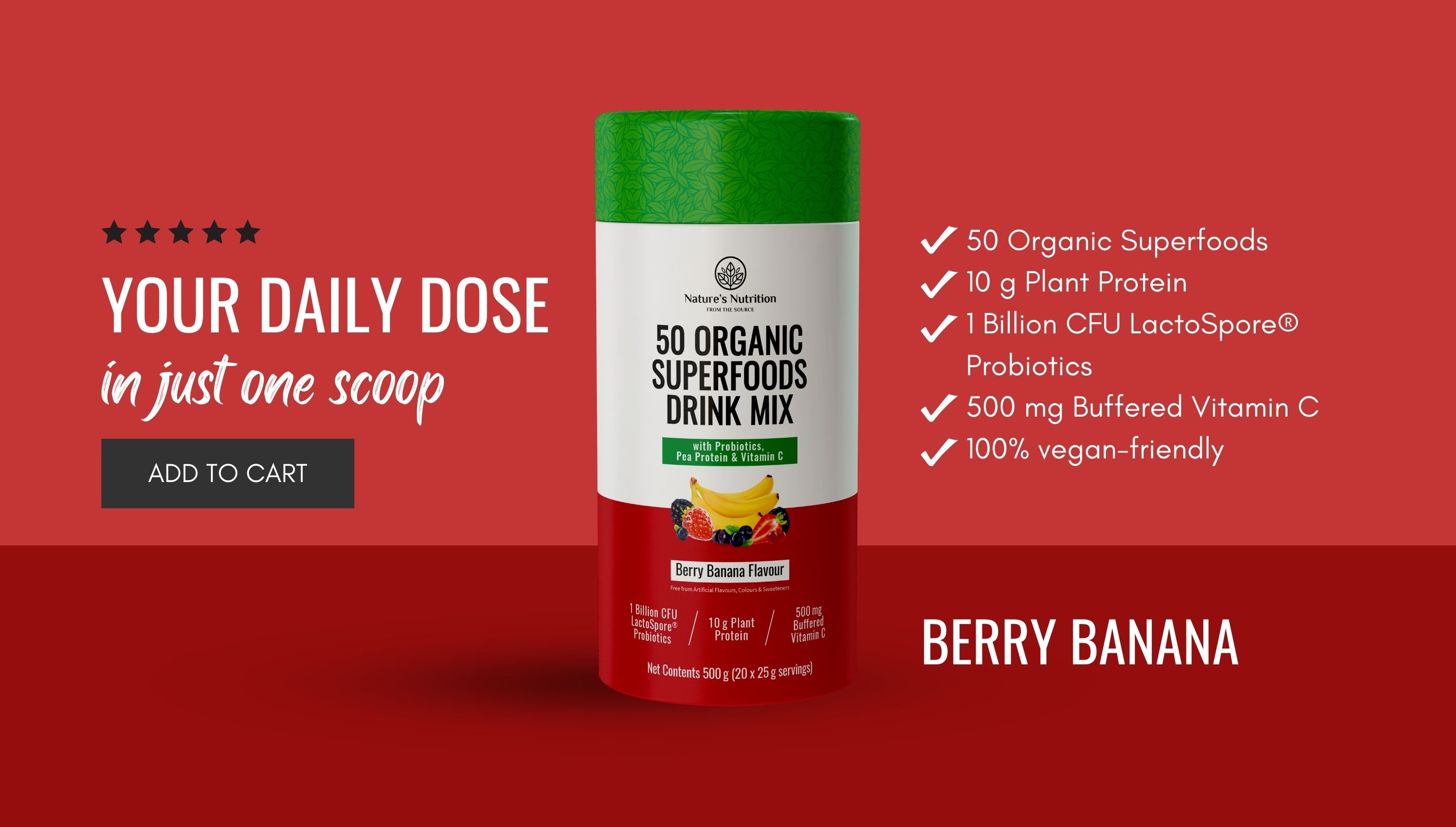 50 Organic Superfoods Drink Mix | Berry Banana- Regular price
