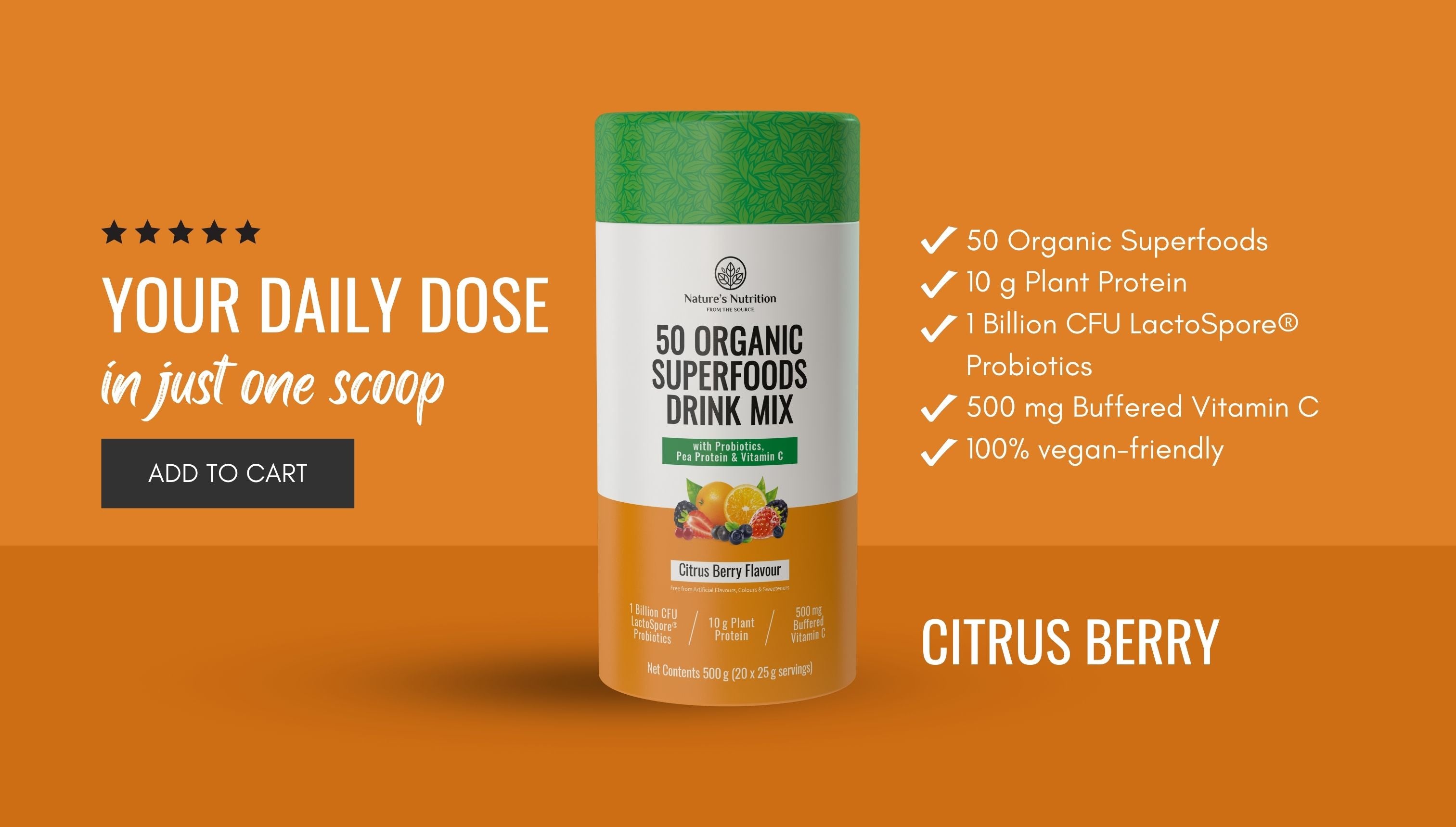 50 Organic Superfoods Drink Mix | Citrus Berry- Regular price