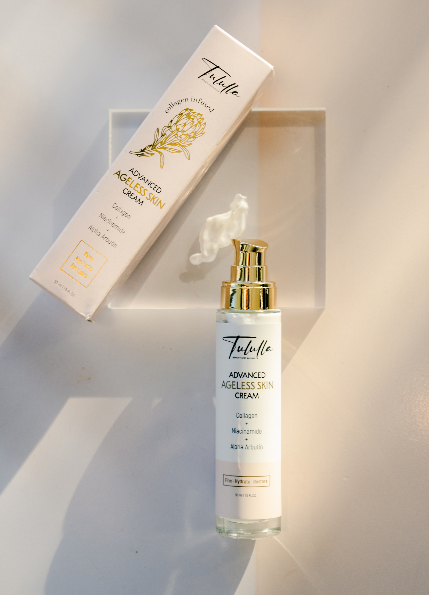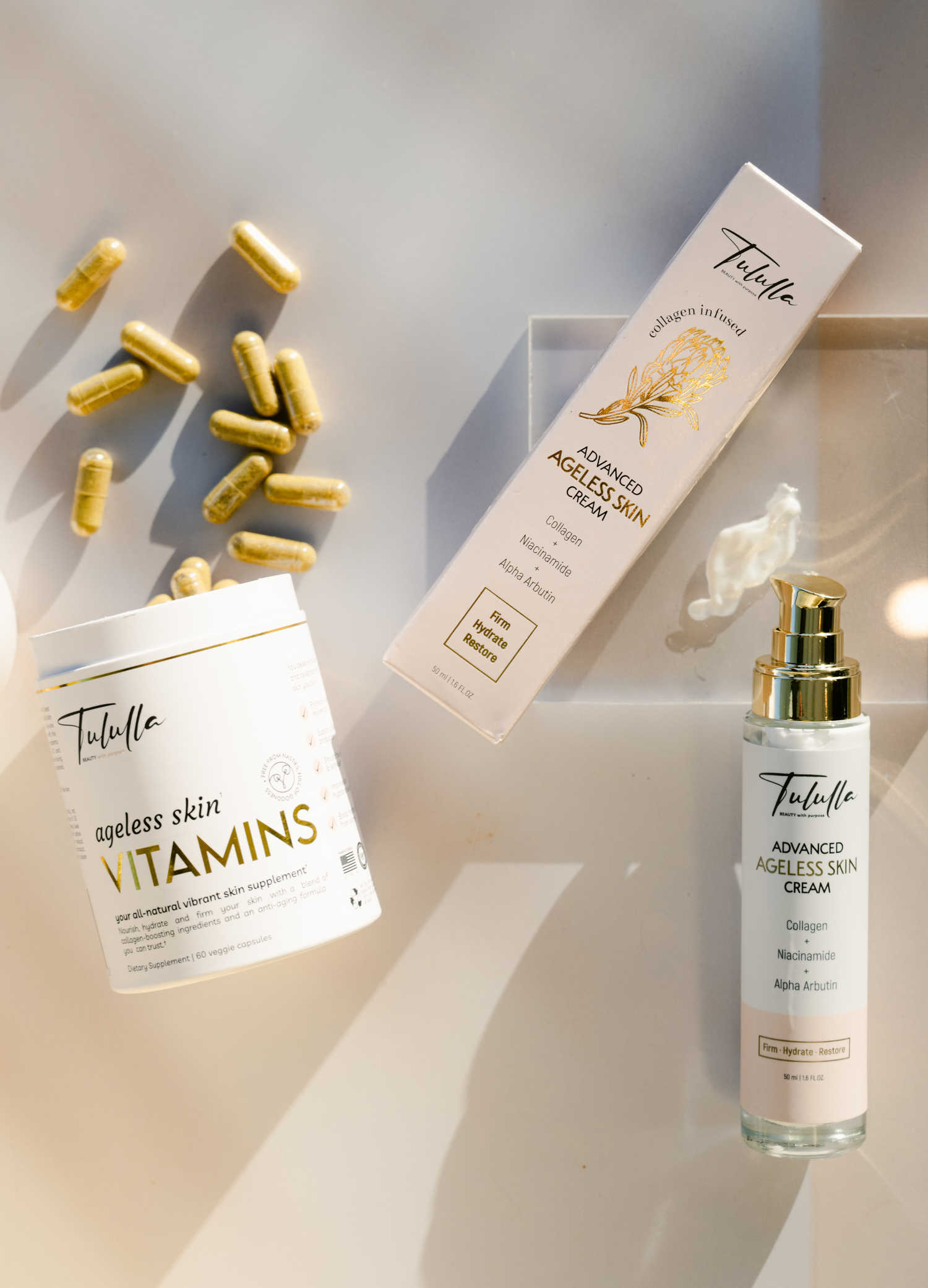 Tululla advanced ageless skin CREAM provides a unique combination of anti-ageing ingredients in one single formula. It should perfectly complement other steps in your skincare regime. Oral supplementation of collagen in addition to using our advanced ageless skin CREAM can also amplify the benefits of collagen for skin.