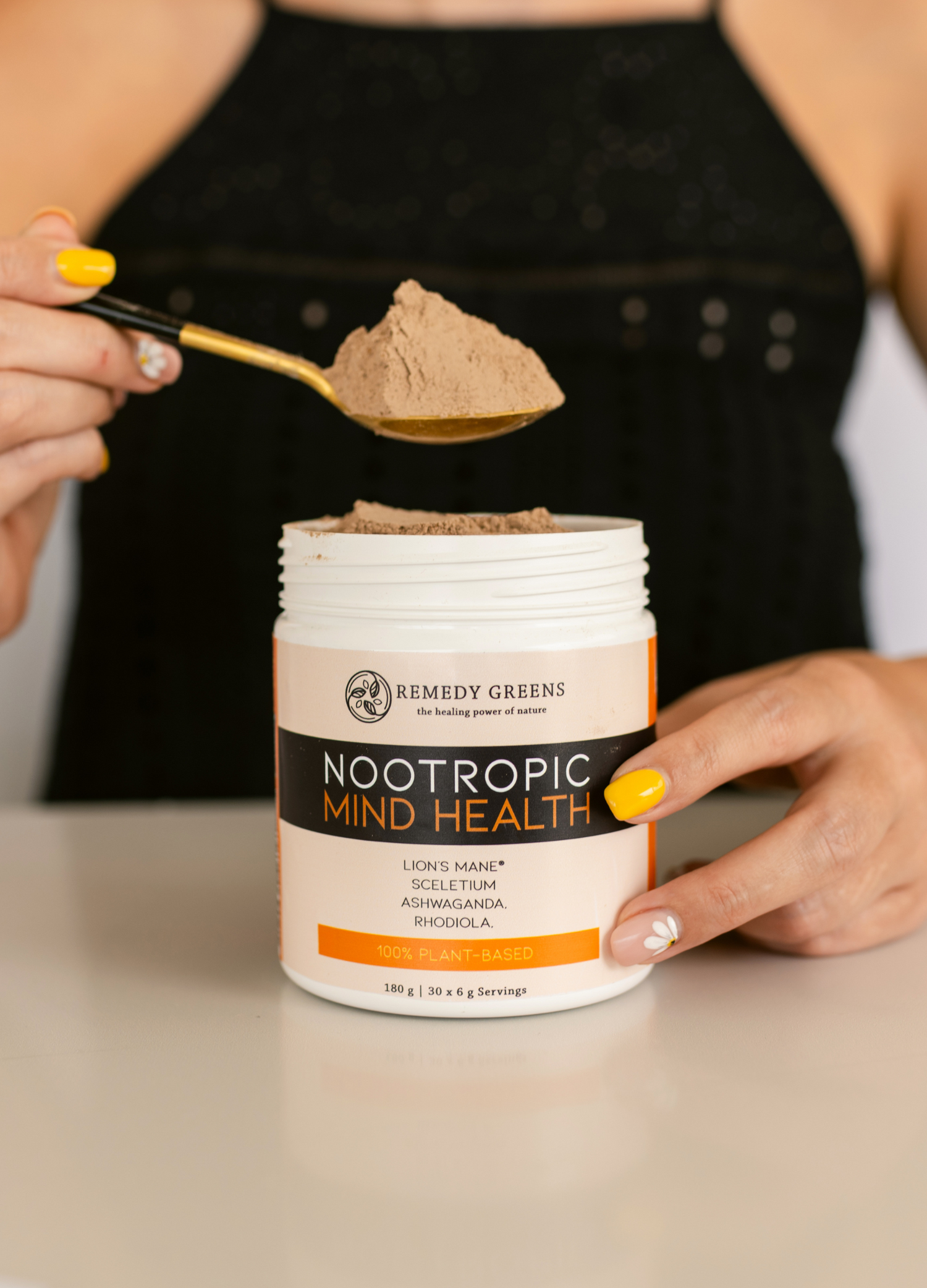 Nootropics, also known as “smart drugs” are a diverse group of medicinal substances that are designed to improve thinking, learning and memory, especially in those who have impaired function in these areas. Remedy Greens provides a natural source of nootropics which, in addition to getting enough sleep, eating a nutrient-dense diet and managing your stress, can help you to think more clearly and sharply, reduce mental