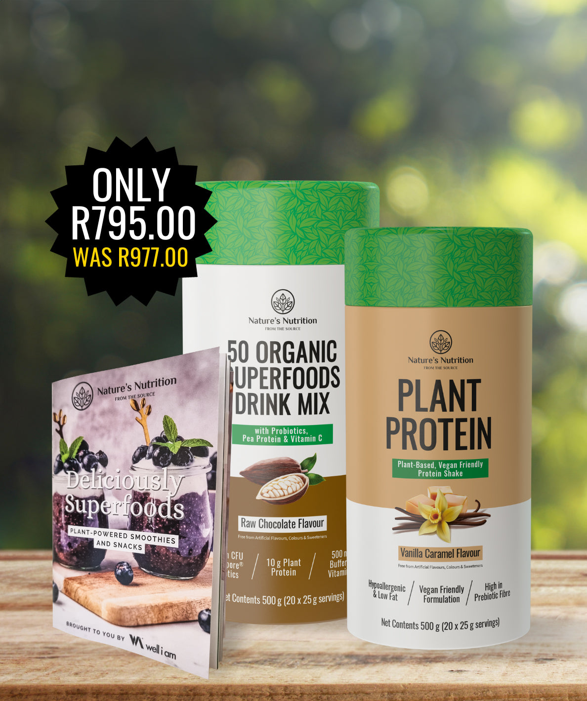 Pair your favourite Plant Protein with your choice of Nature’s Nutrition 50 Organic Superfoods Drink Mix, an all-in-one blend of 50 organic superfoods, probiotics, vitamins and minerals, and get a FREE recipe book.