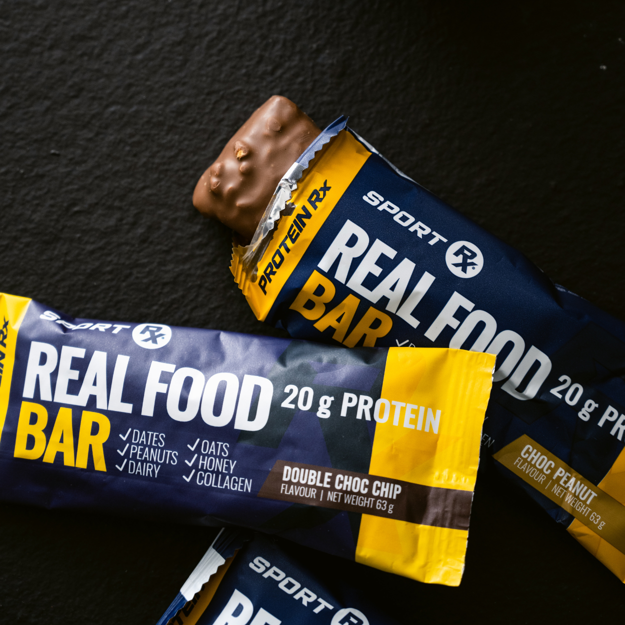 Introducing SPORT Rx Real Food Bars – the ultimate combination of delicious and healthy. Packed with 20g of protein from whey, milk, collagen, and pea, these bars are made from nourishing real food ingredients, including almonds, oats, and dates. The added bonus of a delightful no sugar added chocolate coating makes them an irresistible treat. Plus, these bars are high in fibre and completely free from synthetic ingredients, making them the perfect high protein snack for fuelling your active lifestyle.
